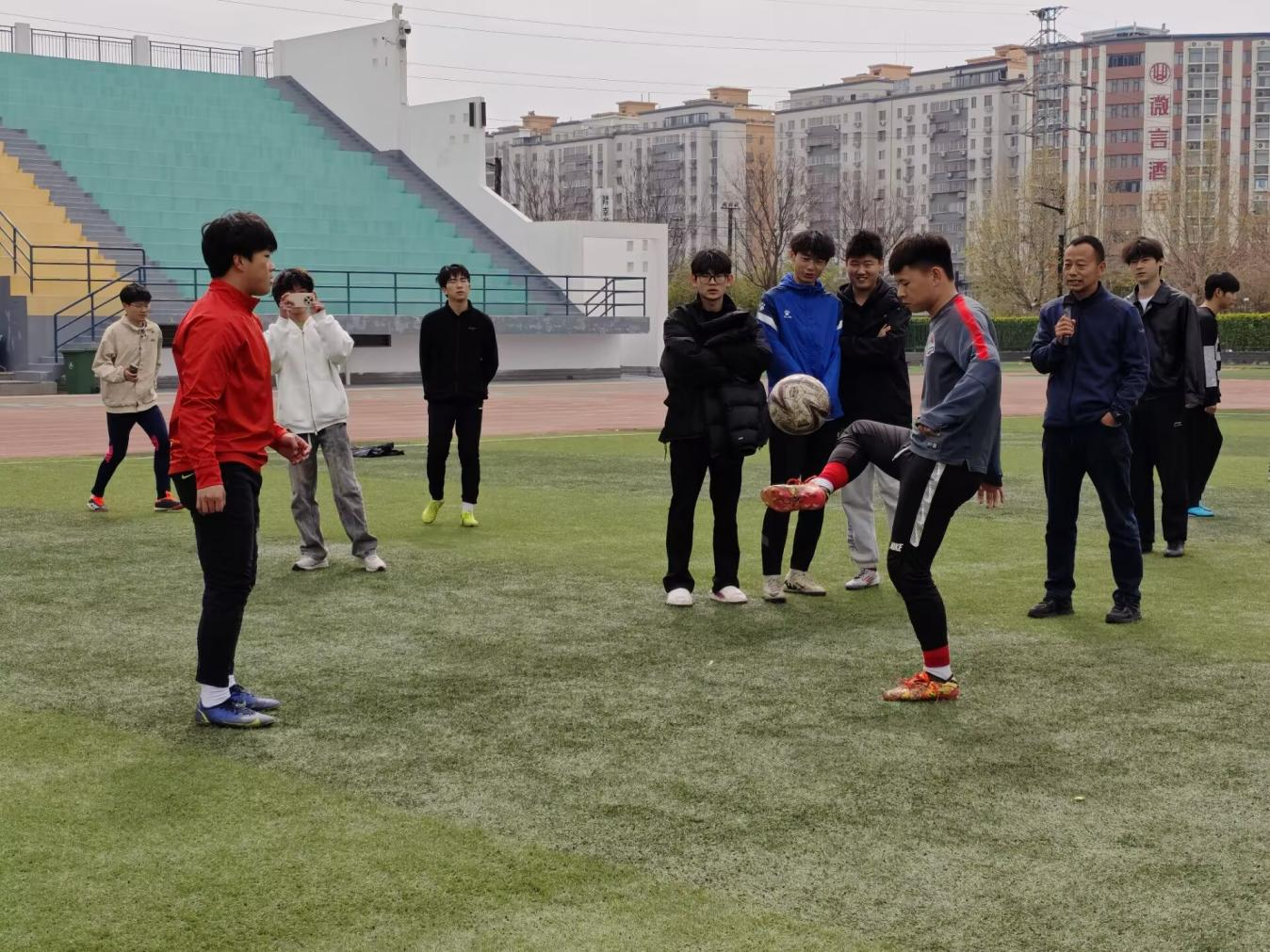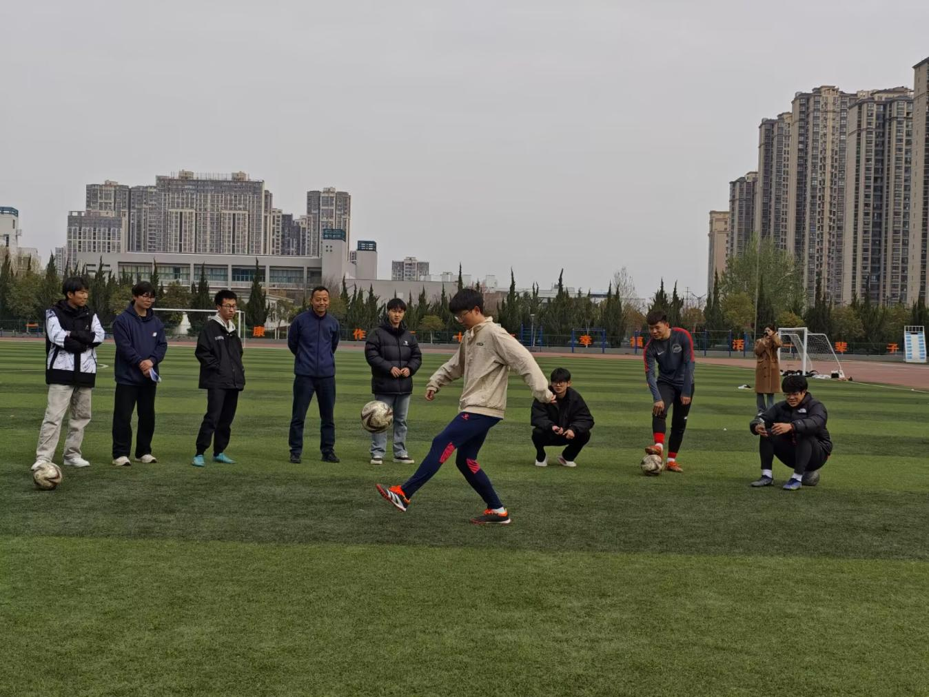 4月1日,足球社举办“绿茵逐梦·青春飞扬”为主题花样足球赛在祥云体育场举办,活动伊始,足球社团成员们熟练地运用双脚、膝盖、头部等部位开启颠球表演。足球在他们的操控下,仿佛被赋予了生命,在空中欢快地跳跃、翻滚。成员们以其精湛的技艺脱颖而出,将单脚颠球、双脚交替颠球与花式技巧巧妙融合,身体的协调性与对足球的掌控力令人赞叹。本次比赛以“技巧+创意”为核心,不仅为热爱足球的同学们提供了一个展示自我的平台,更激发了大家对足球运动的热情。