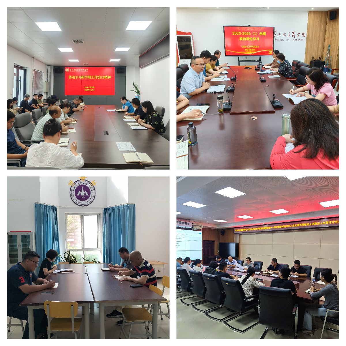 为贯彻落实《黄河水利职业技术大学2025年下半年政治理论学习及思想道德教育计划》学习要求,9月9日,全校各部门、各单位分别组织教职工传达学习新学期工作会议精神,并专题学习习近平总书记在纪念中国人民抗日战争暨世界反法西斯战争胜利80周年大会上的重要讲话和习近平总书记关于教育的重要论述--强化教育对科技和人才支撑作用 形成人才辈出人尽其才才尽其用生动局面,引导全校师生从抗战历史中汲取精神力量,将伟大抗战精神融入立德树人全过程,以实际行动服务国家战略需求,推动教育强国建设,为强国建设和民族复兴伟业培养更多高素质的技能人才。(供图:各相关部门)