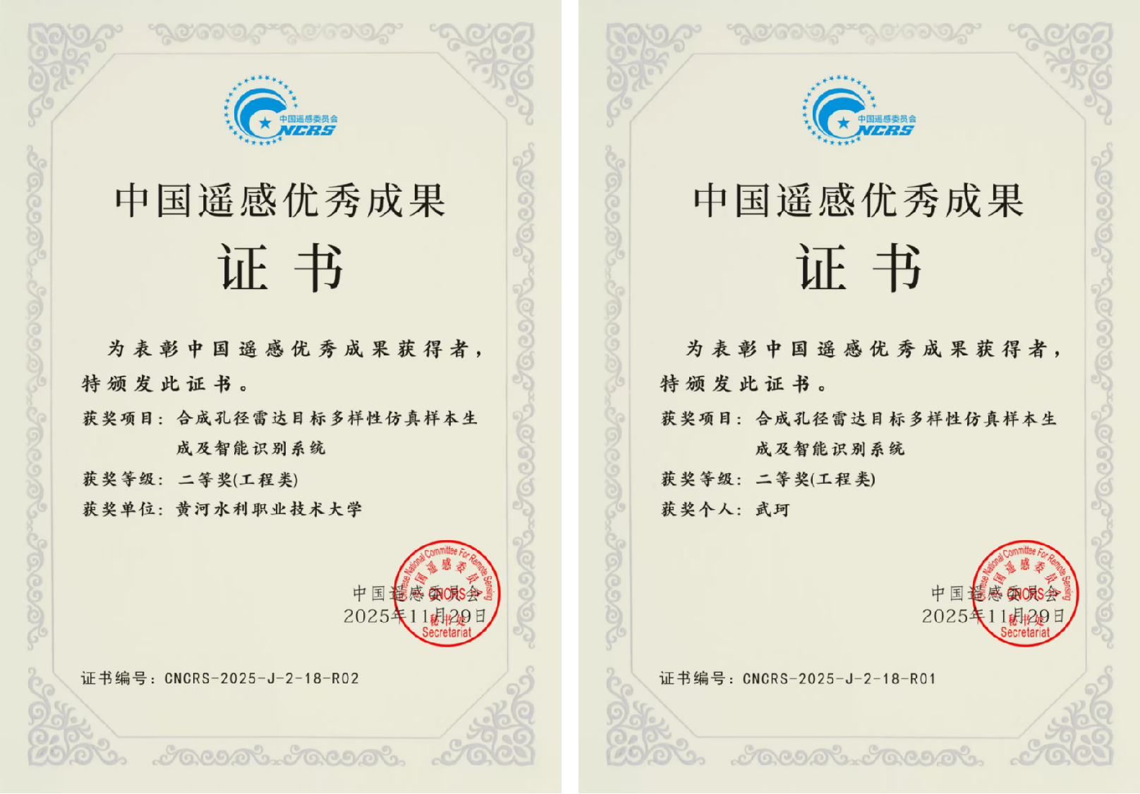 2025年11月,第二十三届中国遥感大会在广州举行,大会表彰了年度中国遥感优秀成果。其中我校测绘工程学院武珂博士团队,在学校科研体系的有力支撑下,成功研制的“合成孔径雷达目标多样性仿真样本生成及智能识别系统”,荣获2025年度中国遥感委员会优秀成果二等奖。这一荣誉不仅彰显了该校在尖端测绘技术领域的创新实力,更标志着其校级雷达仿真实验室建设取得突破性进展,为服务国家重大战略需求提供了坚实支撑。