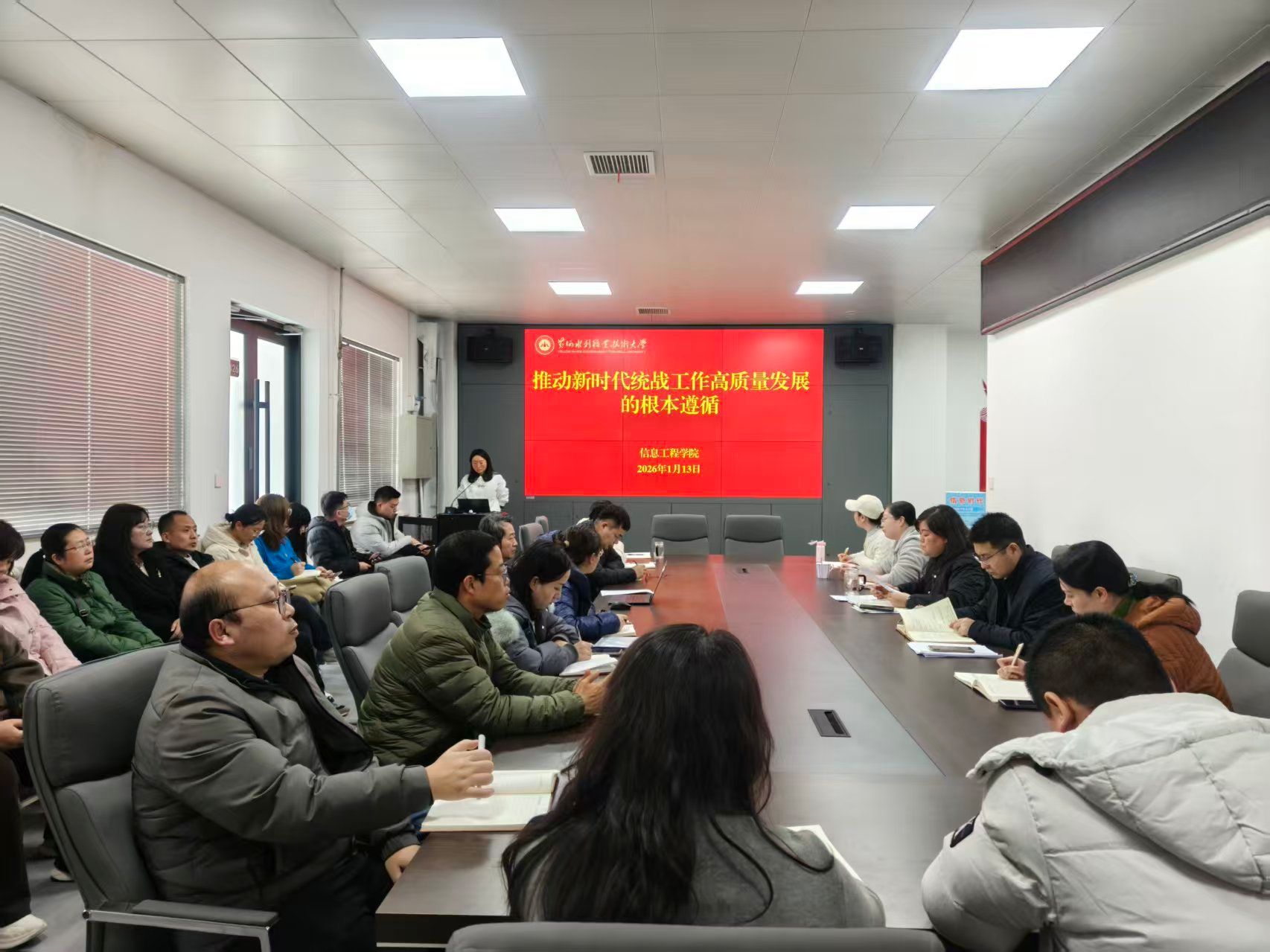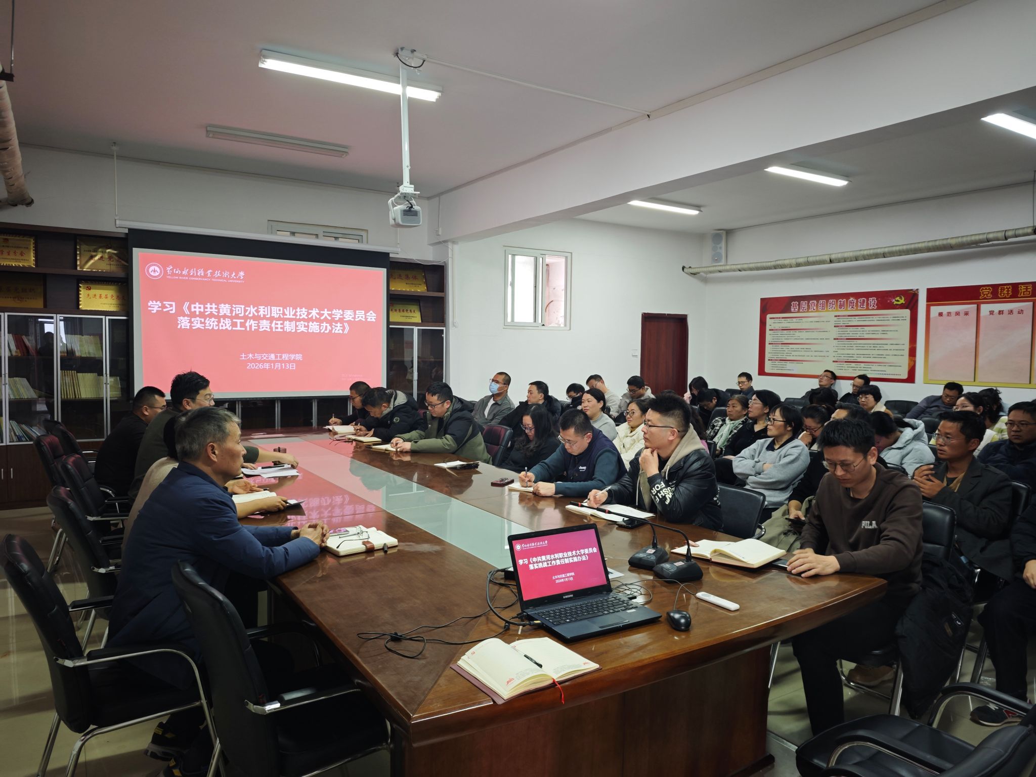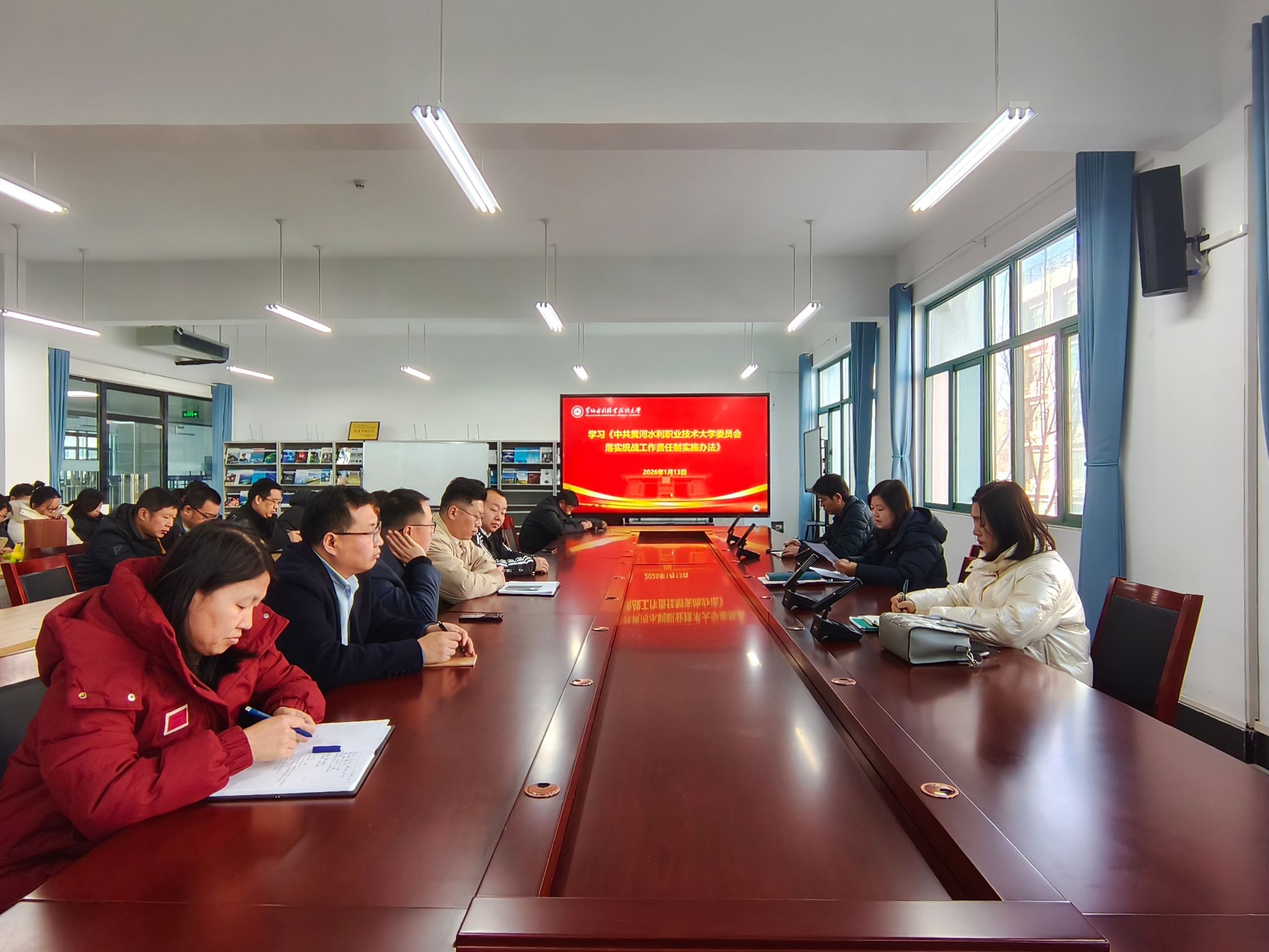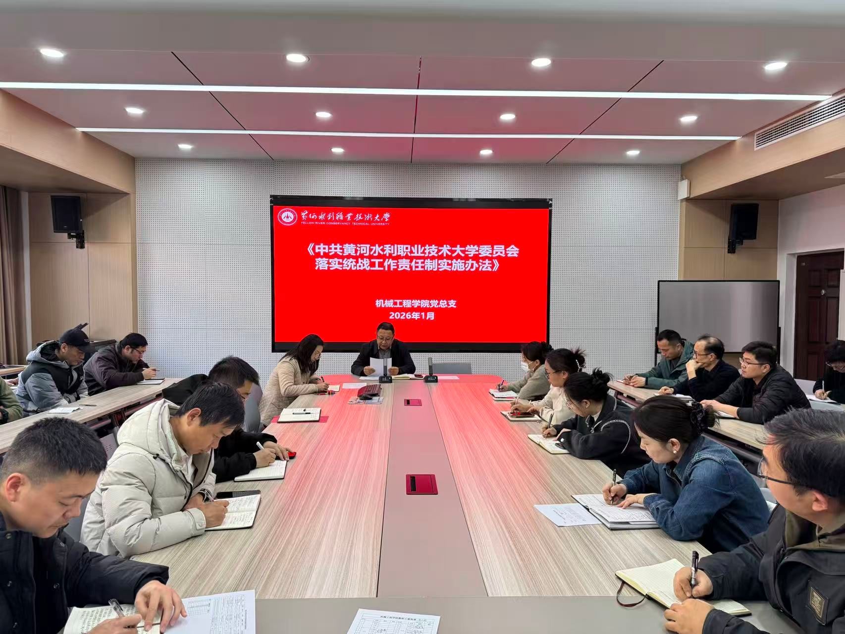 为贯彻落实《黄水2025年下半年政治理论学习及思想道德教育计划》学习要求,1月13日,全校各部门、各单位分别组织教职工传达学习中央统战部《求是》刊文:推动新时代统战工作高质量发展的根本遵循和《中共黄河水利职业技术大学委员会落实统战工作责任制实施办法》,积极引导师生及时跟进学习习近平总书记关于统战工作的重要讲话和重要指示批示精神,在推动统一战线在强国建设、民族复兴伟业中更好发挥凝聚人心、汇聚力量的政治作用,确保我校统战工作沿着正确方向高质量发展。(供图:各相关部门)
