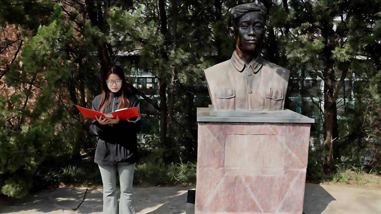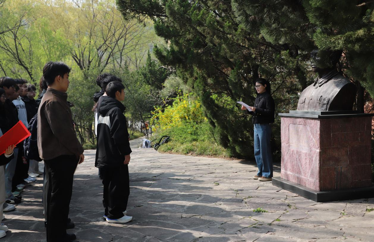 鲲鹏山吴祖泰烈士雕像旁,校学生会成员刘长昊同学结合吴祖泰烈士扎根修渠一线、坚守岗位不言弃的事迹,分享了对新时代青年责任与担当的理解,号召同学们脚踏实地,把个人成长融入国家发展大局;红旗渠精神传承者协会成员胡雨鑫同学围绕烈士不畏艰险、舍生忘死的奉献精神分享学习体会,表达了传承英烈精神、锤炼过硬本领、以青春之力践行报国之志的坚定决心;校团委程潇菡老师引导同学们要以英烈为标杆,把对先烈的崇敬之情转化为勤学不辍、实干担当的内生动力,在时代浪潮中勇担青年使命,不负韶华、不负人民;全体师生面向烈士纪念雕像庄严宣誓,以铿锵誓言彰显对英烈的深切缅怀与接续奋斗的郑重承诺。