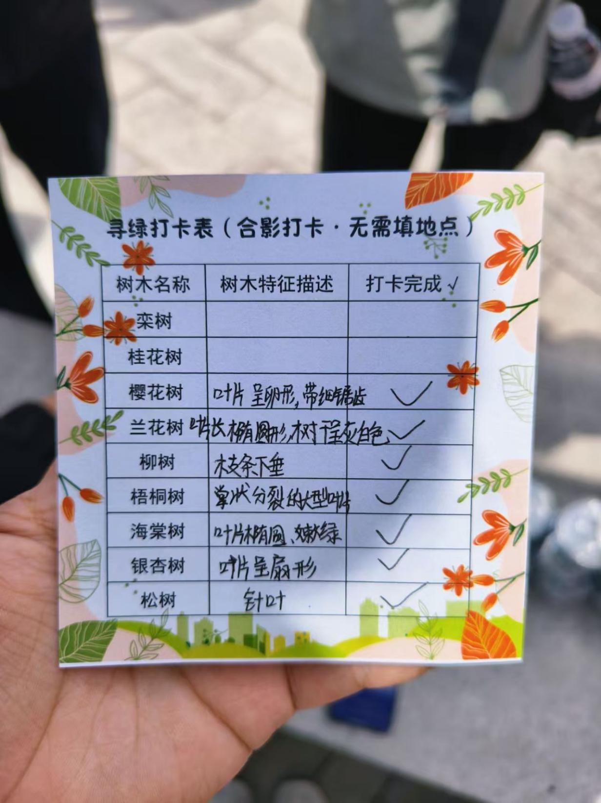 4月25日-4月27日,由环保社主办的“寻找一棵树”主题实践活动在扬帆广场前长廊举行。活动紧扣“唤起人类爱护地球、保护家园的意识,倡导绿色低碳生活方式”的核心,引导同学们在观察与寻觅中,深刻体悟树木作为地球生态重要守护者的价值。通过将环保理念从书本引向实践、从口号化为行动,同学们进一步理解了绿色、低碳、循环生活方式的内涵。