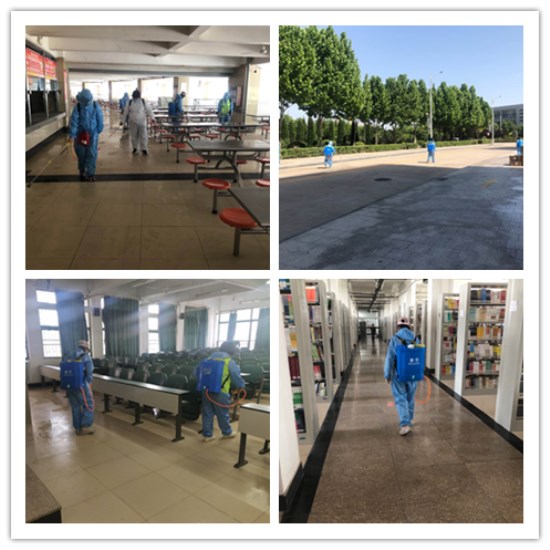 疫情防控常态化对学校公共卫生管理提出了更高的要求,后勤管理服务中心进一步提高认识、提高站位,严肃认真落实学校党委关于疫情防控工作的安排部署。切实维护全体师生的健康安全,切实保障学校秩序正常运行。工作中,后勤管理服务中心精心安排专业消毒人员合理配置消毒液,对教室、实训室、学生活动中心、食堂、宿舍、运动场等场所逐一实施消毒杀菌,对电梯、桌椅、餐桌、门把手、楼梯扶手、洗手池等高频接触部位密集反复消毒,对校园主干道、广场、花坛及各个楼道进行了全面清洗、药液喷洒,确保所有场所无遗漏、所有部位无死角;召集食堂工作人员、教学楼保洁等进行防疫知识培训,对平时的消杀工作进行再要求、再部署,确保师生用餐环境、工作学习场所安全卫生。