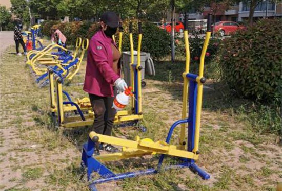 活动中,教工道桥支部的党员教师们带齐消杀用品,从小区丰巢快递柜到健身器材、入户单元门把手等入手,对公共活动场所和公用设施进行全方位消杀。大家一丝不苟的喷洒和擦洗,汗珠浸透了衣服,但他们乐在心头,汗水换来了洁净和安心。