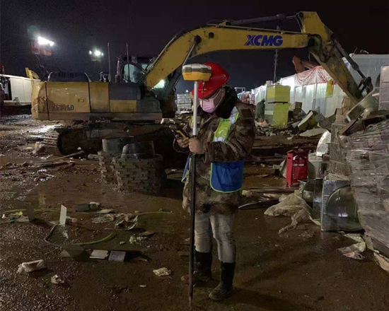 1月28日,肖清源到达雷神山医院项目施工工地,当天就坚守夜班。那天下着小雨,晚上特别冷,晚班的工作是雨污水管埋设,需要及时复合沟槽开挖标高,他要不停地上下沟槽,身上一会儿就湿漉漉的,分不清是汗水还是雨水,对于寒风也渐渐麻木了。第二天早上9点拖着疲倦的身体回到宾馆,他有些后悔,本来可以宅在家里舒舒服服的躲过这次疫情,为什么要冒着危险来这里受罪?是不是要想法离开?他反复问自己。直到中午酒店送餐时,随餐有一张卡片,上写着:“在抵抗疫情泛滥的危重时刻,你们是最美最帅的逆行者,武汉人民感谢您!”肖清源瞬间就热泪盈眶了,原本动摇的心又坚定起来,他知道自己这次的付出是值得的,在武汉面临严重疫情的时刻,作为建设者就应该义无反顾地逆难而上。肖清源想到了昨天晚上那些一整晚泡在水中安装雨污水管的工人而他们第二天还得继续坚持、想到了报道中不断上升的确诊和疑似病例数字、想到了那些急需医院收治的病患……他快速吃完饭又投入到下午和晚上的工作中去。在此次工程中,他承担测量工作,作为工程建设的排头兵,测量工作要做到细致、精准,他用自己的专业知识和工作经验,在每一次测量、放样中快速、精准完成测量工作,为下一步施工赶时间、抢进度。工程项目的工作制度是两班互倒24小时不停歇,劳动强度相当大,肖清源和他的同事们与时间赛跑、与疫情竞速,星夜驰援,按期完成了雷神山医院项目建设工作,在这场没有硝烟的战役中,奋勇逆行、冲锋在前、无私奉献。