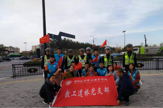 11月13日早上,土木与交通工程学院教工道桥党支部联合“小水滴”文明交通志愿服务队在夷山大街与东京大道交叉口开展“文明交通”志愿服务活动。