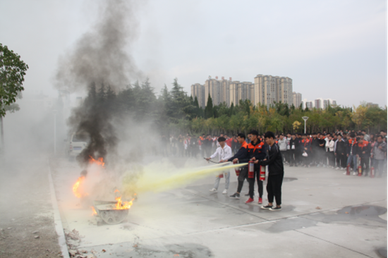 活动分为消防知识讲解和现场演练两部分。在消防知识讲解环节中,消防救援大队吴欣俣教员讲解了公寓用电起火、食堂操作间油锅起火、图书馆突发火险等情况下的预防处理和扑救办法,并现场演示了4KG干粉灭火器的正确使用方法、操作程序。在现场演练环节,现场人员分批次进入灭火点进行演练。大家通过学习到的灭火器使用方法,提起灭火器,左右摇晃,拉开保险栓,手握喷射软管,对准火源根部喷射,“熊熊大火”一次又一次的被成功扑灭。本次消防演练进一步强化了师生们对消防安全常识的理解和消防安全意识,增强了突发火灾应急处置能力,达到了预期目的,取得圆满成功。(供图:保卫处)