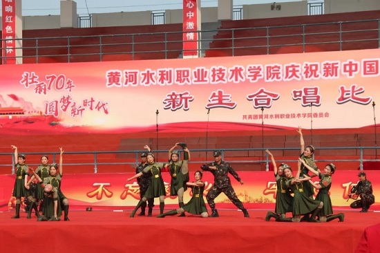 比赛在大学生艺术团带来的舞蹈《奋进·中国》中拉开帷幕。土木与交通工程学院代表队演唱的歌曲《歌唱祖国》、国际教育学院代表队演唱的歌曲《国家》以及旅游学院代表队演唱的歌曲《我和我的祖国》充分表达了水院学子的爱国之情,他们高举旗帜共同歌唱美丽的祖国;测绘工程学院代表队演唱的歌曲《天耀中华》以及环境工程学院代表队演唱的歌曲《我们都是追梦人》抒发了中华儿女紧跟党的方针,把作为中国人的自豪感表现得淋漓尽致;电气工程学院代表队演唱的歌曲《走进新时代》吹响了新时代新征程的号角;商务与管理学院代表队演唱的歌曲《我爱你中国》、机械工程学院代表队演唱的歌曲《中华一家亲》及信息工程学院代表队演唱的歌曲《我的中国心》用歌声化为对祖国母亲的爱,将现场气氛推向了高潮;金融与会计学院代表队演唱的歌曲《走向复兴》用嘹亮的歌声唱出对祖国未来的向往与憧憬了;艺术与设计学院代表队倾情奉献的歌曲《黄河船夫曲》唱出了中国不屈不挠的奋斗精神。水利工程学院代表队演唱的歌曲《在灿烂的阳光下》抒发了对祖国对党感恩的情怀。最后8000余名师生齐唱《红旗飘飘》与《黄河水利职业技术学院校歌》,在嘹亮的歌声中,本次比赛顺利拉上帷幕。最终,艺术与设计学院、商务与管理学院获得一等奖;经网络投票水利工程学院获最佳人气奖。