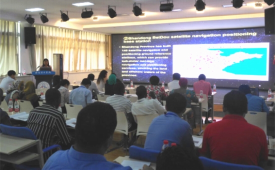 讲座中,3位教师以《北斗卫星导航系统在“一带一路”基础设施中的应用》为主题进行全英文授课,向各国学员介绍了我国北斗系统基本情况和优势,并结合丰富实例讲解了北斗的定位、导航和授时等三大领域在一带一路基础设施建设方面的应用;在理论授课中还穿插进行了相关技术的示范操作。讲授结束后,3位教师对学员们提出的相关问题一一给予解答,得到了学员们的一致认同。何宽老师还向各国学员着重介绍了我校主持的“测绘地理信息技术专业国家教学资源库”的建设情况和使用方法,扩大了该资源库项目的影响力。