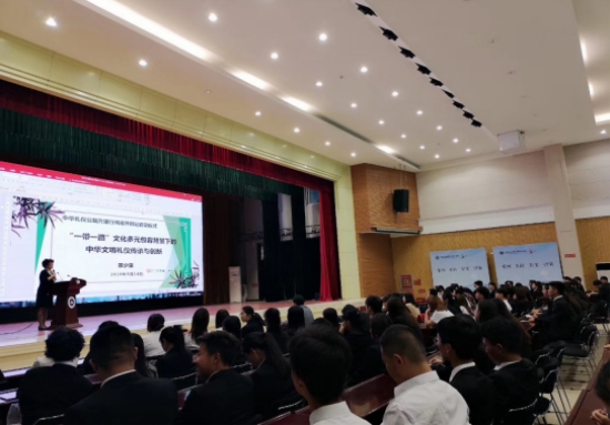 5月14日下午,中国职教学会人文素质教育研究会副会长蔡少惠教授应邀在大学生活动中心做《“一带一路”文化多元包容背景下的中华文明礼仪传承与创新》主题学术报告。来自全校的500余名师生聆听了报告。