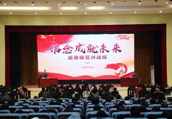 12月25日下午,我校在学生活动中心报告厅举办了“水之韵·有为者说论坛”第二期,邀请感动中国十大人物、中国十大杰出青年、全国道德模范洪战辉校长做主题为“信念成就未来”的报告。校团委全体人员、各学院分团委书记及700余名学生到场聆听了报告。