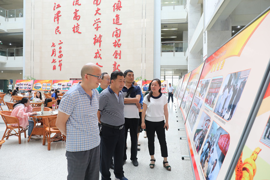 5月29日下午,纪念中共中央“五一口号”发布70周年暨河南高校统一战线发展建设主题图片展在河南大学金明校区举行,校党委委员、统战部部长于兆国,统战部副部长姚芬,我校各民主党派主要负责人和部分成员等参加活动。