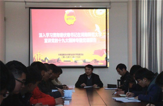 会上,校团委老师领学了省委书记谢伏瞻在河南师范大学宣讲党的十九大精神专题党课报告内容,并对报告精神做了深刻解读。