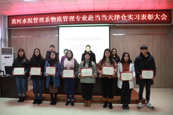 12月20日下午,我校管理系物流管理专业学生赴当当网天津仓实习表彰大会在学生活动中心隆重举行,北京当当网信息技术有限公司华北总部行政经理杨超、天天企业管理有限公司经理袁世保、我校管理系主任周爱荣及物流管理专业的师生代表等参会。