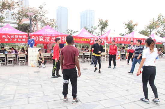 90竞技足球社在招新现场进行小型球技比赛