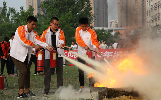 为进一步加强学校安全工作,增强师生消防安全意识,提高师生火灾扑救应急处置能力,5月5日下午,我校在1号教学楼西侧空地举行了消防灭火演练活动。机械工程学院、环境与化学工程系、图书馆、后勤服务中心等重点防火部门的相关人员及各院系学生代表200余人参加了演练。