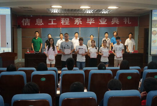 丁爱萍宣布该系优秀毕业生名单。系领导和老师们分别为秦秋凤等6名获得省级优秀应届毕业生及钮娟等10名校级优秀应届毕业生颁发证书,并向他们表示衷心的祝贺。