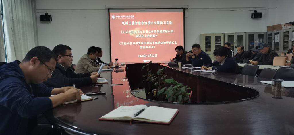 10月13日下午,我校各部门认真学习了《习近平在教育文化卫生体育领域专家代表座谈会上的讲话》和《习近平在中央党校(国家行政学院)中青年干部培训班开班式上的重要讲话》等文件精神,并观看了相关视频资料,深刻领会了习近平总书记的重要讲话精神内涵。习近平总书记在讲话中强调,在实际工作中要提高“七种能力”,要将“想干事、能干事、干成事,不断解决问题、破解难题”贯穿到人才培养全过程,增强“四个意识”、坚定“四个自信”、自觉做到“两个维护”,牢记初心使命、勇于担当作为、善于攻坚克难。全体党员干部、教职工认真学习、深入领会习近平总书记重要讲话精神,大家表示,一定要牢记习近平总书记的谆谆教诲,积极投身教书育人事业,不断提高教学能力和服务社会的能力,忠实践行“立德树人,教书育人”的神圣使命,自觉担负起党和人民赋予的时代重任。(供图:相关各部门)