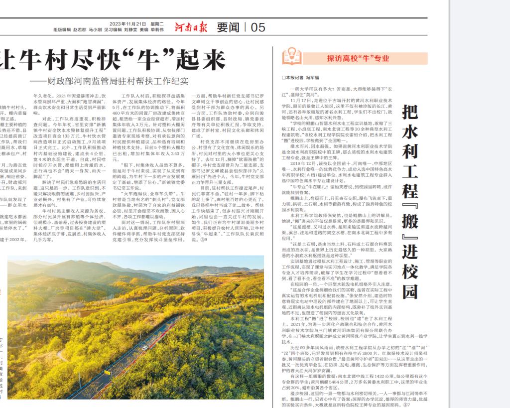 河南日报:把水利工程“搬”进校园 (探访高校“牛”专业)