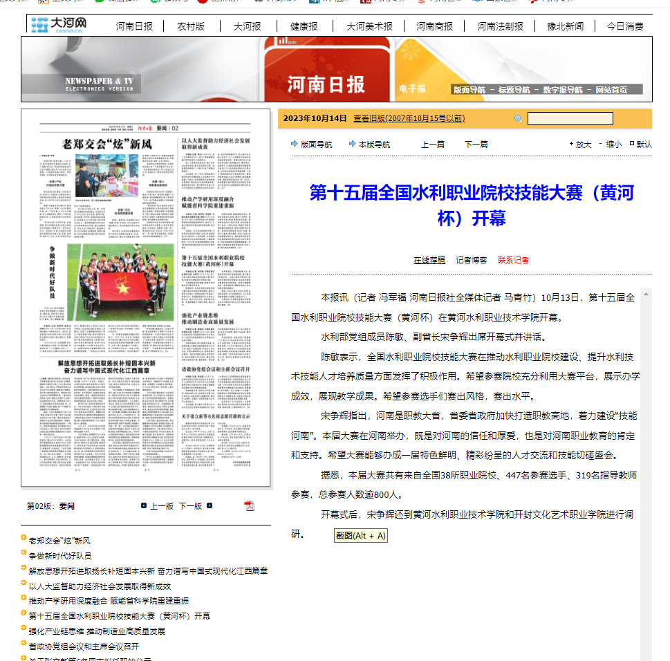 10月13日,第十五届全国水利职业院校技能大赛(黄河杯)在黄河水利职业技术学院开幕。