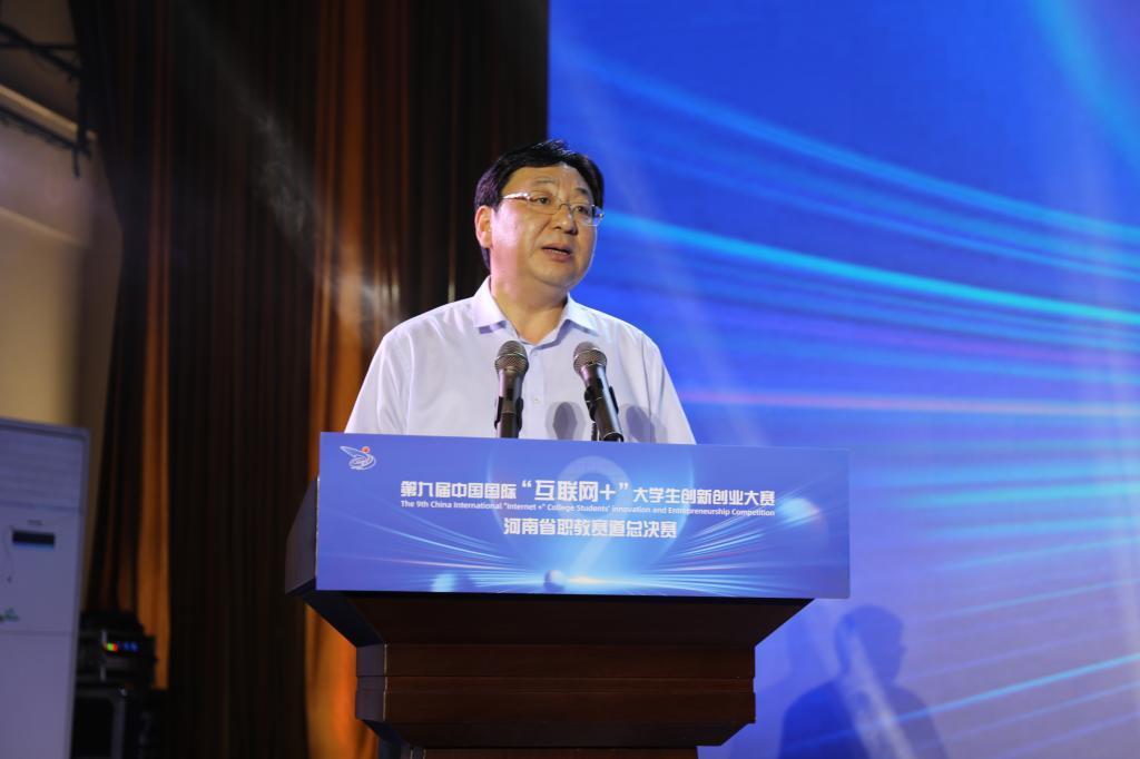 我敢闯,我会创。7月18日下午,由河南省教育厅主办、黄河水利职业技术学院承办的第九届中国国际“互联网+”大学生创新创业大赛河南省职教赛道总决赛开幕。河南省教育厅党组成员、副厅长朱自锋,职成教处二级调研员张家成,职成教处副处长张俊丽,学校党委书记周保平,党委副书记、校长胡昊出席开幕式。评委专家代表,120个项目团队代表,以及40所参赛高校领导、领队老师参加开幕式。