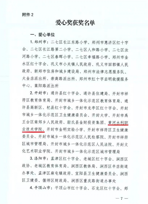 近日,河南省红十字会发布《关于河南省红十字系统2022年58人道公益日人道资源动员工作的表彰通报》,对工作成绩突出的单位进行表彰,黄河水利职业技术学院获评“人道资源动员工作爱心单位”。