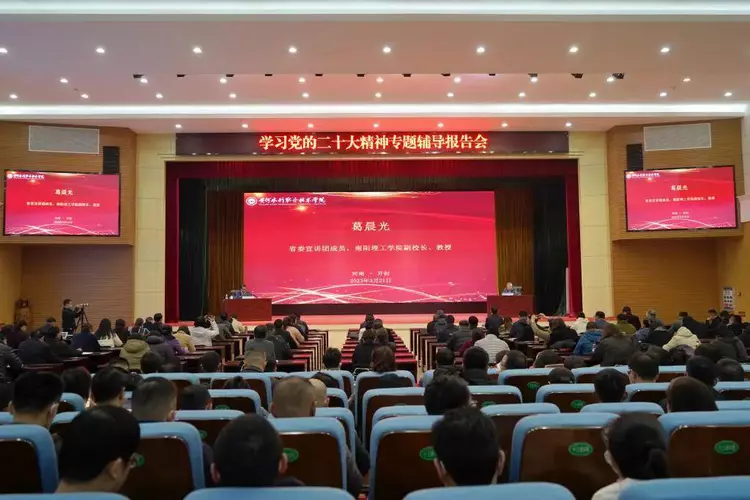3月21日,省委宣讲团成员、南阳理工学院副校长葛晨光教授应邀在黄河水利职业技术学院学生活动中心报告厅作学习党的二十大精神专题辅导报告。学校科级以上干部、辅导员、马克思主义学院全体教师聆听报告,报告会由黄河水院副校长刘玉宾主持。