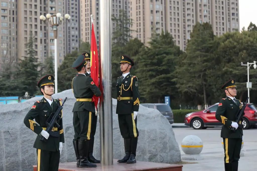 为激励全校师生自信自强、守正创新,踔厉奋发、勇毅前行,在现代化建设新征程上奋勇争先、更加出彩,2月20日,学校举行新学期升旗仪式暨开学思政第一课活动,党委书记周保平出席仪式,党政办公室、党委宣传部、党委学工部、团委等部门负责同志,各学院党总支、分团委负责同志及学生代表参加仪式。仪式由党委副书记、工会主席杨士恒主持。