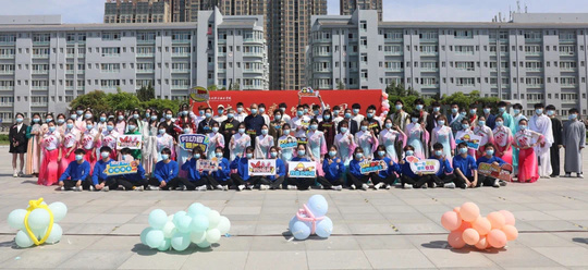 学校领导与文艺活动学子合影