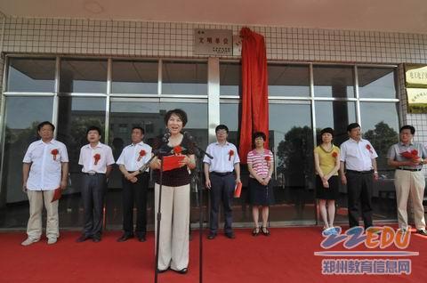 最后黄河水利职业技术学院刘国际院长、郑州市教育局副局长葛飞、新密市教育体育局李霞局长、职教中心杨海现校长共同为河南省新密市职教中心、黄河水利职业技术学院中高职衔接示范基地揭牌。(图/: 新密市 王婷 胡国栋 陈林森)