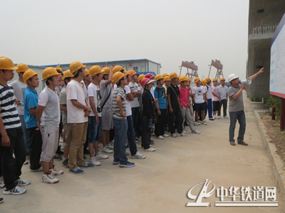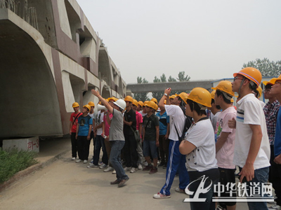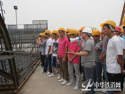 (中华铁道网、《路讯》杂志特约通讯员朱锡荣 肖爱红)2012年5月25日上午,60余名黄河水利职业技术学院道路桥梁专业的学生在两名老师的带领下到中国铁建中铁十五局集团贵州中铁路桥公司郑开项目中牟制梁场施工现场观摩学习,“零距离”感受施工作业现场氛围。