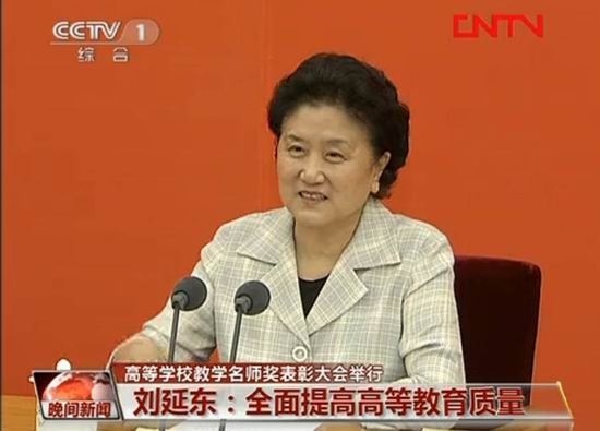 中共中央政治局委员、国务委员刘延东出席会议讲话并为获奖教师颁奖