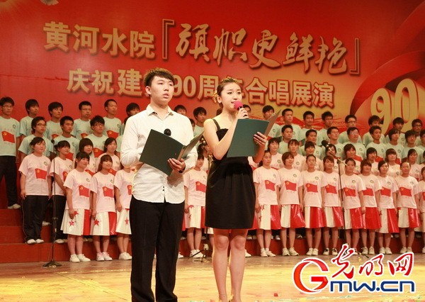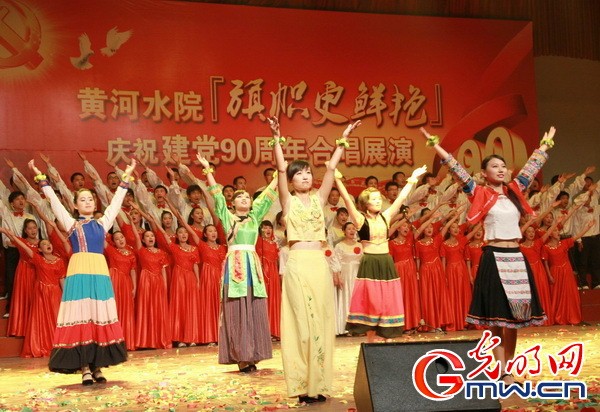 唱响红歌重温红色经典,激情澎湃喜迎党的生日。6月15日晚,黄河水利职业技术学院“旗帜更鲜艳”庆祝建党90周年红歌合唱展演在校风雨球场举行。院领导张惠贞、刘国际、孙五继、茹正波、王卫东、刘紫婷与2500余名师生共同放歌,一曲曲高亢嘹亮的歌声唱出了全院师生热爱祖国、欢庆党的90华诞之情。