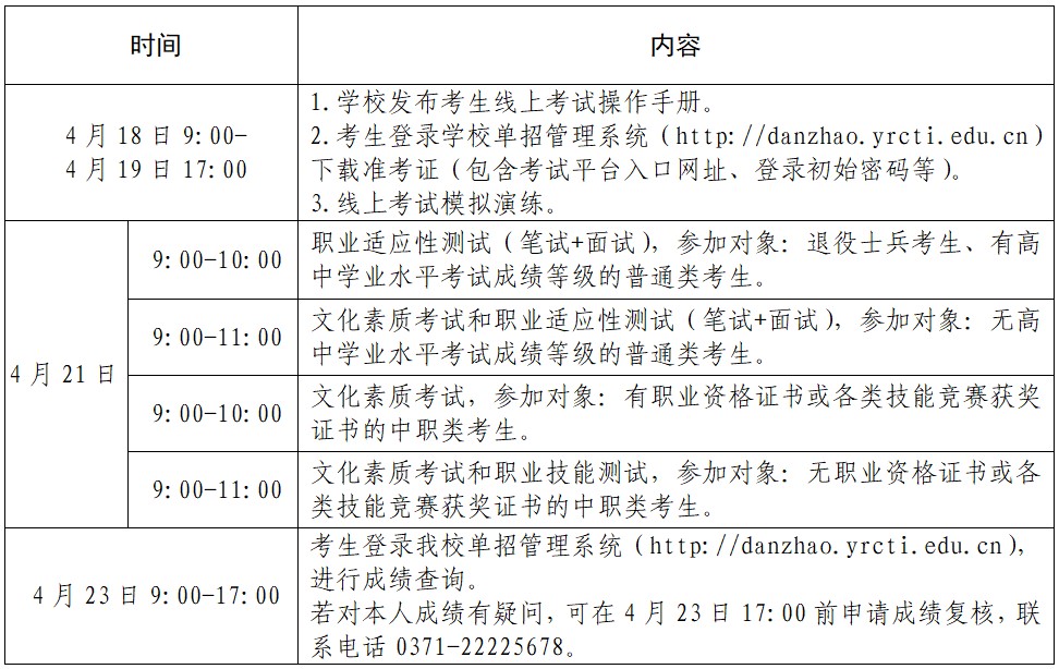 根据河南省教育厅办公室《关于进一步做好2022年高等职业教育单独考试工作的紧急通知》(教办考院〔2022100号)精神,我校对2022年高等职业教育单独考试招生工作做出调整,现公告如下。