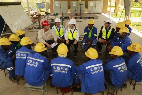 侯京民在大禹学院考察了学生正在进行的实训项目,向教师了解实训项目组织情况,向管理人员了解生源分布及学生就业情况。在实训车间,他饶有兴趣地坐在电焊专业学生自己焊接的小铁凳上,与赞比亚学员围坐在一起,询问了他们的学习和生活情况。在电站施工营区,侯京民听取了校、企双方关于赞比亚大禹学院开办、运行情况的介绍。他对企业在服务“一带一路”倡议中体现出的社会责任意识与担当精神以及海外事业的发展成就给予高度评价。对学员们全部通过TEVETA(赞比亚国家二级技能考试)理论和实操考试表示祝贺,并亲切地勉励他们继续努力学习,提升技能,为赞比亚经济发展做出贡献。对大禹学院取得的成就给予肯定。他指出,事业要发展,人才是关键。我校与水电十一局深化产教融合、校企合作,创造性地开办了大禹学院,既解决了企业国际工程项目本土化技能人才的需求,又为工程所在国培养了大批本土化水利水电人才,可谓是一举多赢。大禹学院的办学模式是校企深度合作对习近平总书记关于构建中非命运共同体重要指示的积极探索,符合中央职教改革关于校企双元育人的要求,符合中非合作论坛关于为非洲培养更多实用人才的要求,是可复制可推广的国际人才培养新路径,对解决非洲当地人才短缺,推动非洲水利水电事业发展具有重要意义。他建议校企加强与水电国际组织和机构的交流合作,整合资源,打牢根基持续发展,把中国理念和中国标准传授出去。在谈到大禹学院未来发展时,侯京民指出,大禹学院实施校企合作、产教融合的办学模式,依托国外水电工程并结合项目开展教学,水利特色鲜明,形成了互惠双赢的良性循环职业教育模式,下一步要进一步深入研究可持续发展问题。他要求,水利部人事司要积极支持大禹学院建设,推动国际化水利人才培养,更好地服务“一带一路”建设。