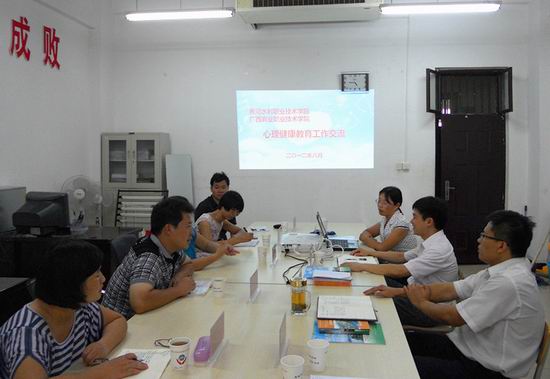 8月5日下午,广西农业职业技术学院学生处副处长李柳红一行5人到我院,就心理健康教育、辅导员待遇与管理等方面内容进行交流考察。我院学生处副处长刘许亮、王国英及学生处倪凤琨、霍卫红老师热情接待了来访客人。