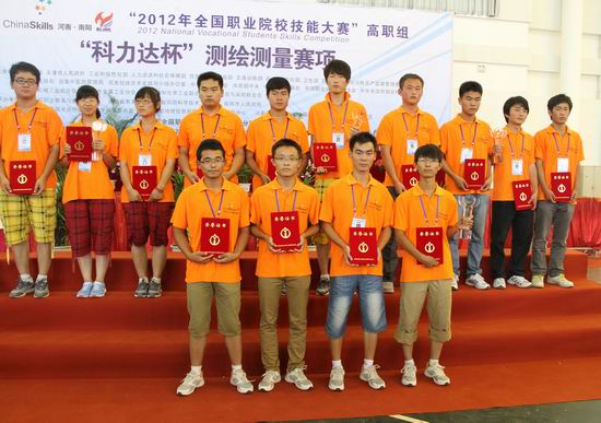 6月22日至26日,2012年全国职业院校技能大赛高职组测绘测量赛项在河南工业职业技术学院如期举行,来自全国27个省(直辖市、自治区)53支代表队的200多名参赛选手参加了比赛。由我院测绘工程系主任赵杰带队,周建郑、师军良、李孝雁、朱曙光指导,庞玉杰、高怀亮、余成志和林小帅组成的我院代表队(河南省一队)发挥出色,一举囊括本赛项中“数字测图”、“二等水准测量”和“计算器编程”三个分项目的一等奖,并获得团体一等奖。师军良、李孝雁两位老师获得“优秀指导教师”,庞玉杰同学获得“国家测量技师”资格,高怀亮、余成志和林小帅三位同学获得“国家三级测量员”(高级工)资格。