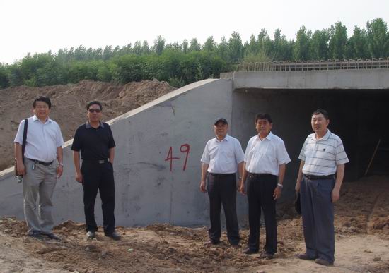 为扎实做好2012年防汛工作,立足于防大汛、抗大灾、早部署、争主动的原则,2012年6月1日下午,学院主管领导茹院长带领学院党政办公室主任刘玉宾、后勤管理办公室主任曲新峰、副主任戴建锋、保卫处处长张建平、后勤服务中心副主任孟兆光一行6人,先后来到我院防汛任务地段——黄河大堤防汛责任堤段及连霍高速蔡家坟村南路涵洞进行实地察看。