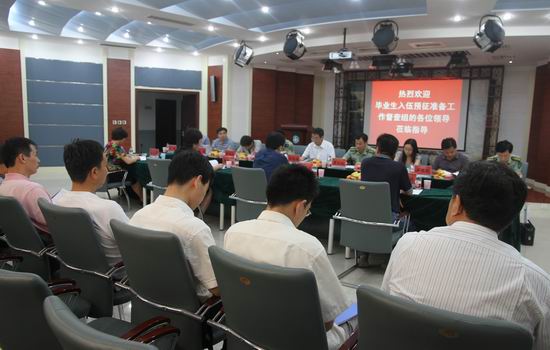 在听取汇报后,张继栋副主任做了讲话,对我院2012年应届毕业生入伍预征情况给予了充分肯定,特别是对我院在教育宣传、发动、预征报名阶段的工作表示满意,并对现阶段预征工作提出了指导性意见。