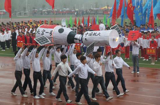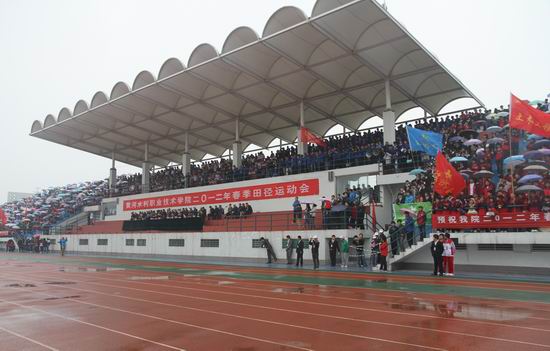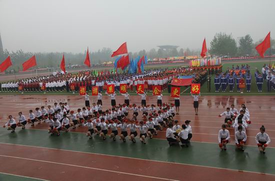 830分,在激昂的运动员进行曲中,国旗护卫队和彩旗队首先入场,他们飒爽的英姿,整齐矫健的步伐,铿锵有力的口号,展现出我院学子奋发向上的精神面貌。随后,全院14个系部运动员代表队迈着整齐的步伐相继入场:水利系气势恢弘的抗洪表演展现出水利人誓与大堤共存亡的坚定信念;土木系方队手舞黄、红搭配的两条长龙,寓意将在龙年延续新的辉煌,迸发出新的光芒;财经系方队在放飞的和平鸽中,活力四射的啦啦队员用精湛的舞姿演绎出青春与梦想,也点燃了全院师生的运动热情;自动化系方队展示的“天宫一号”和“神州八号”航天模型体现了我院学子追求先进、放眼未来的科学探索精神。各系方队激情满怀,洋溢着灿烂的笑容,踏着同样的节奏,演绎着不一样的精彩。