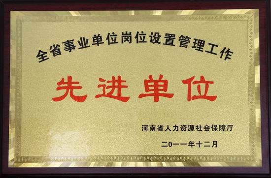日前,河南省人力资源和社会保障厅下发《关于表彰全省事业单位岗位设置管理工作先进单位的通报》,我院被表彰为全省事业单位岗位设置管理工作先进单位。