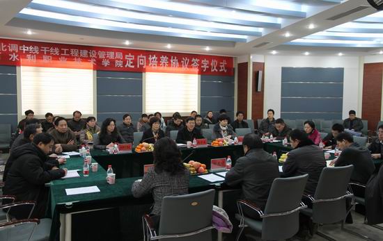 3月8日上午,我院与南水北调中线干线工程建设管理局合作培养协议签订仪式在学院演播大厅举行。南水北调中线工程建管局党组副书记韩连峰、副局长刘宪亮、人力资源部副部长肖军、人事处处长曹玉升,我院领导王卫东、副院长刘紫婷、学院有关部门负责人、部分骨干教师参加了签订仪式,仪式由副院长刘紫婷主持。