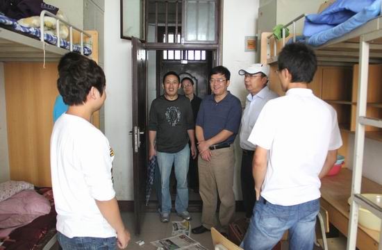 在水利系领导班子的陪同下,刘院长到5号学生公寓楼看望新生,详细了解新生住宿情况。在二楼,刘院长一行与来自宁夏的学生家长和新生亲切交谈,仔细询问他们的报到情况,到这里是否适应,并告诉他们有什么困难及时向水利系和学院反映,学院将会将根据有关政策认真解决。在走访过程中,刘院长询问几个学生的高考成绩,当了解他们高考成绩都在500分以上,刘院长代表学院感谢家长和同学们对我院的信任。并要求水利系继续深化教学改革,加强专业建设,努力提升人才培养质量。