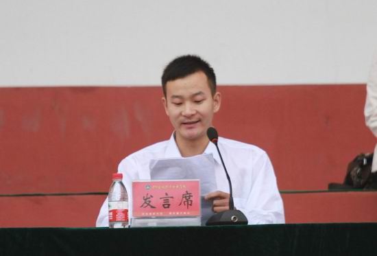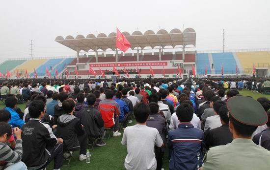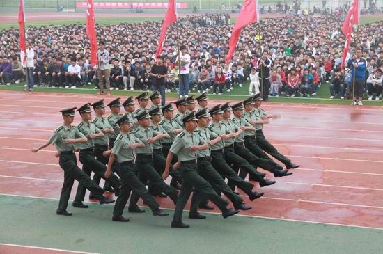 98上午,我院2011级新生开学典礼暨军训动员大会在祥云体育场隆重举行。院党委书记张惠贞,党委副书记、院长刘国际,党委副书记、纪委书记王卫东,承训的驻汴某部首长出席大会。大会由院党政办主任杨士恒主持。