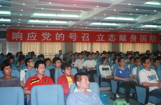 随后,部队领导为大家上了一堂别开生面的征兵宣传课。部队领导用生动幽默的语言和详实的数据结合典型的事例,宣传了大学生义务服兵役的一些优惠政策、报名参军的条件等知识,并深入分析了大学生参军后的发展、待遇等同学们比较关心的问题,报告不时赢得广大师生的阵阵掌声。最后,部队领导希望同学们在学好文化知识的同时,要牢记历史,富国强军,时常关注国家大事,发扬爱国主义精神,踊跃报名参军,为国家的安定和发展贡献力量。