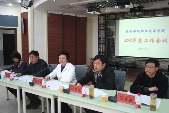 会上,院长刘国际从五个方面部署了黄河水利职业技术学院2011年工作要点:一、以创先争优活动为抓手,切实加强党的各项建设和全院师生的思想政治工作;二、以全面巩固推广示范建设成果为前提,进一步提高教育教学水平和人才培养质量;三、以提高学生就业竞争力为目标,做实、做优招生就业工作;四、以校风、学风建设为切入点,进一步做好学生工作;五、以改革创新为出发点,全面推动学院各项工作。学院2011年工作要点包含35项具体内容,刘院长逐一进行了讲述。刘院长指出,2011年是国家和河南省中长期教育规划纲要实施的起步之年,也是学院“十二五”规划的开局之年,做好今年的工作,对“十二五”开好局、起好步,牢牢把握机遇,促进学院改革和发展具有重要意义。刘院长强调,新的蓝图已绘就,希望全院上下能够全面贯彻全国、全省中长期教育规划纲要和中央一号文件精神,进一步解放思想、转变观念、改革创新,推动学院又好又快发展,以优异的成绩迎接建党90周年。
