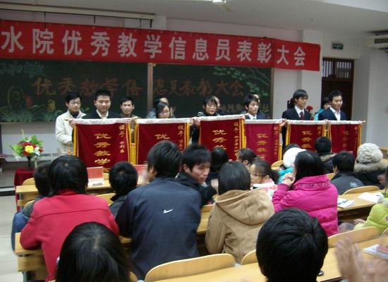 会议对本年度学院教学质量管理和教学信息反馈工作中表现突出的优秀教学信息站和优秀教学信息员进行了表彰。焦爱萍副处长宣读了优秀教学信息站和优秀教学信息员名单,其中水资源工程系、信息工程系、水利系、交通工程系、旅游系和测绘工程系6个教学信息站被评为2010年度优秀教学信息站;水资源工程系叶朝丽等202名学生信息员被评为2010年度优秀教学信息员。会上,与会领导分别向优秀教学信息站和优秀教学信息员颁发了锦旗、获奖证书和奖品。
