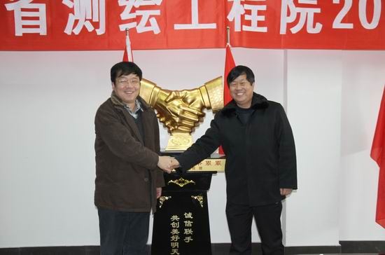 会上,刘国际院长代表学院感谢河南省测绘工程院一年来为我院师生教学、实训提供的优质条件,并介绍了一年来学院在示范院校建设、实训基地建设、学生顶岗实训和技术服务等方面的进展情况;刘院长希望在新的一年里与测绘工程院继续加强合作,提升校企合作层次,构筑更加广阔的合作平台。省测绘院宋新龙院长对年会的顺利召开表示祝贺,对校企合作实现校方、企业、学生的“三赢”表示肯定,并就下一步广泛开展校企合作、工学结合谈了看法。在热烈的掌声中,宋新龙院长代表河南省测绘工程院向我院赠送了“校企合作、硕果累累”纪念品。