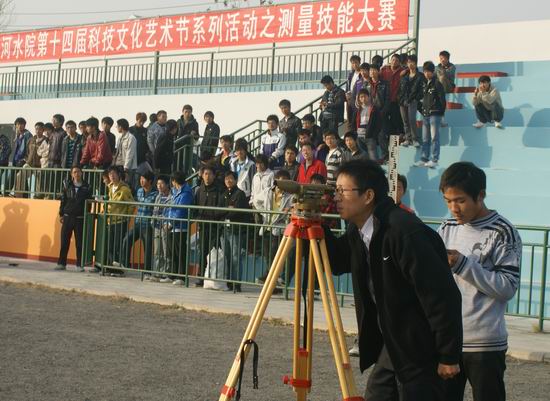 1121日,由院团委、测绘工程系主办,测绘工程系分团委承办的第十四届科技文化艺术节系列活动之测量技能大赛在我院五环体育场拉开帷幕。测绘系党总支书记周建郑、副书记刘广社、分团委书记高琼、工学办主任师军良及部分专业教师担任评委。