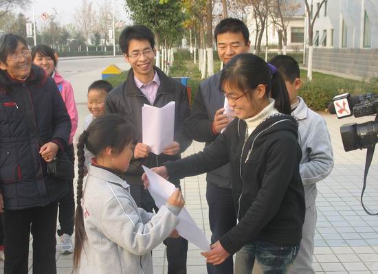 据悉,丁会丽同学今年暑假期间在报纸上了解到刘传真老人的事迹后,便利用节假日机会,匿名免费到“筑梦爱心辅导站”给30多名留守儿童辅导功课,并将自己用的棉被捐献给孩子们。事后,刘传真老人通过多方打听,获知丁会丽是我院学生,非常感动,专程赶来表示感谢。开封电视台对此事迹进行了全程报道。